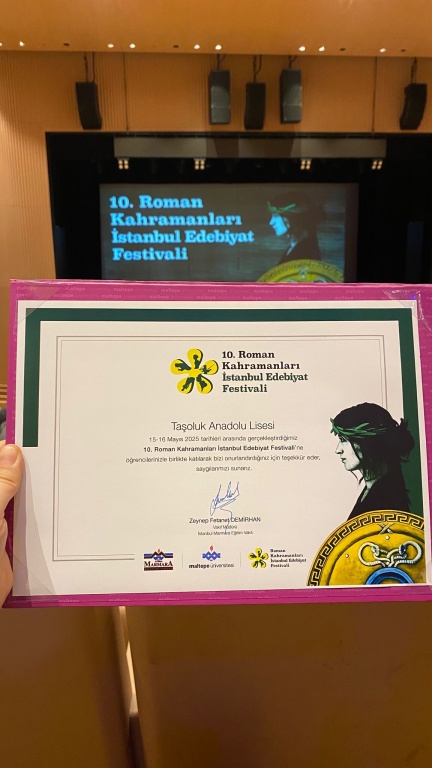Taşoluk Anadolu Lisesi olarak 16 Mayıs 2025'te Taksim Atatürk Kültür Merkezinde onuncusu yapılan Roman Kahramanları Festivaline katıldık.
